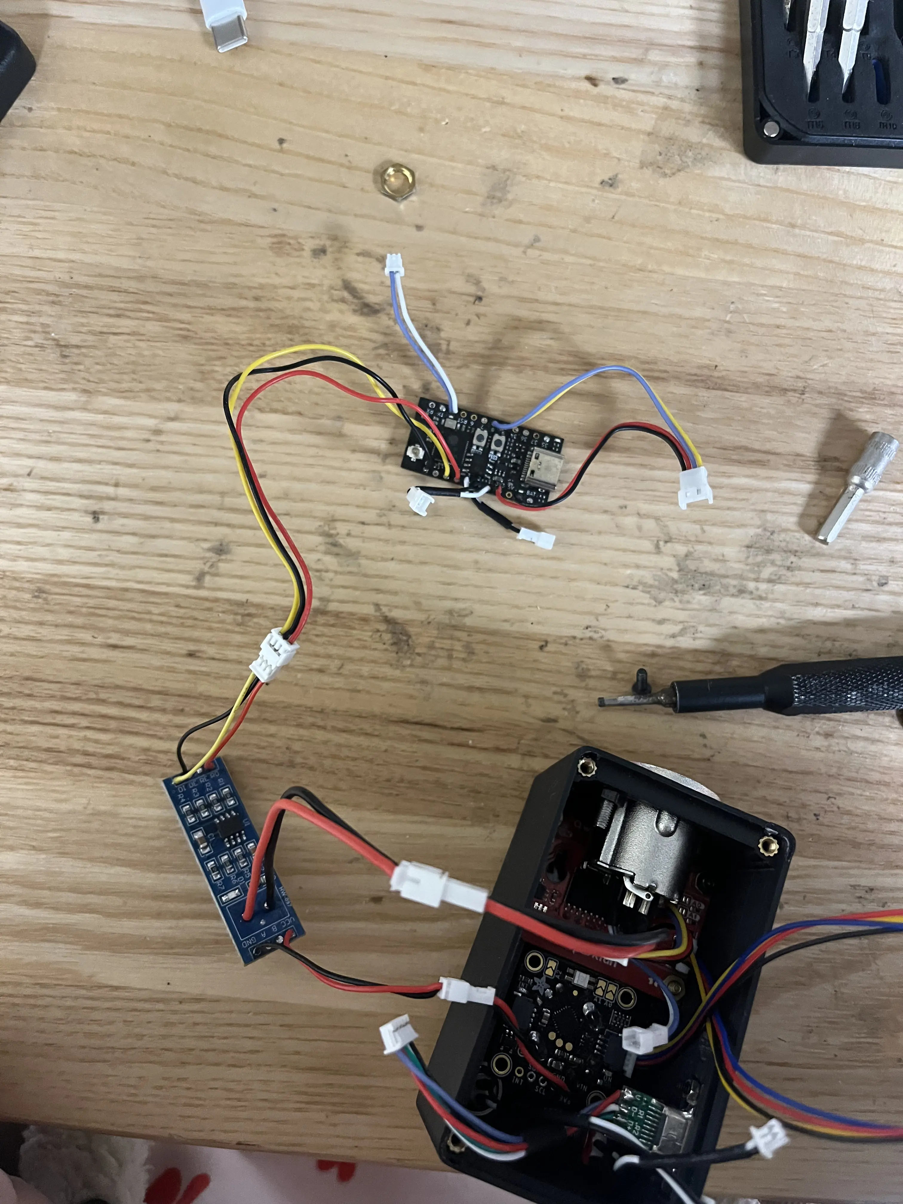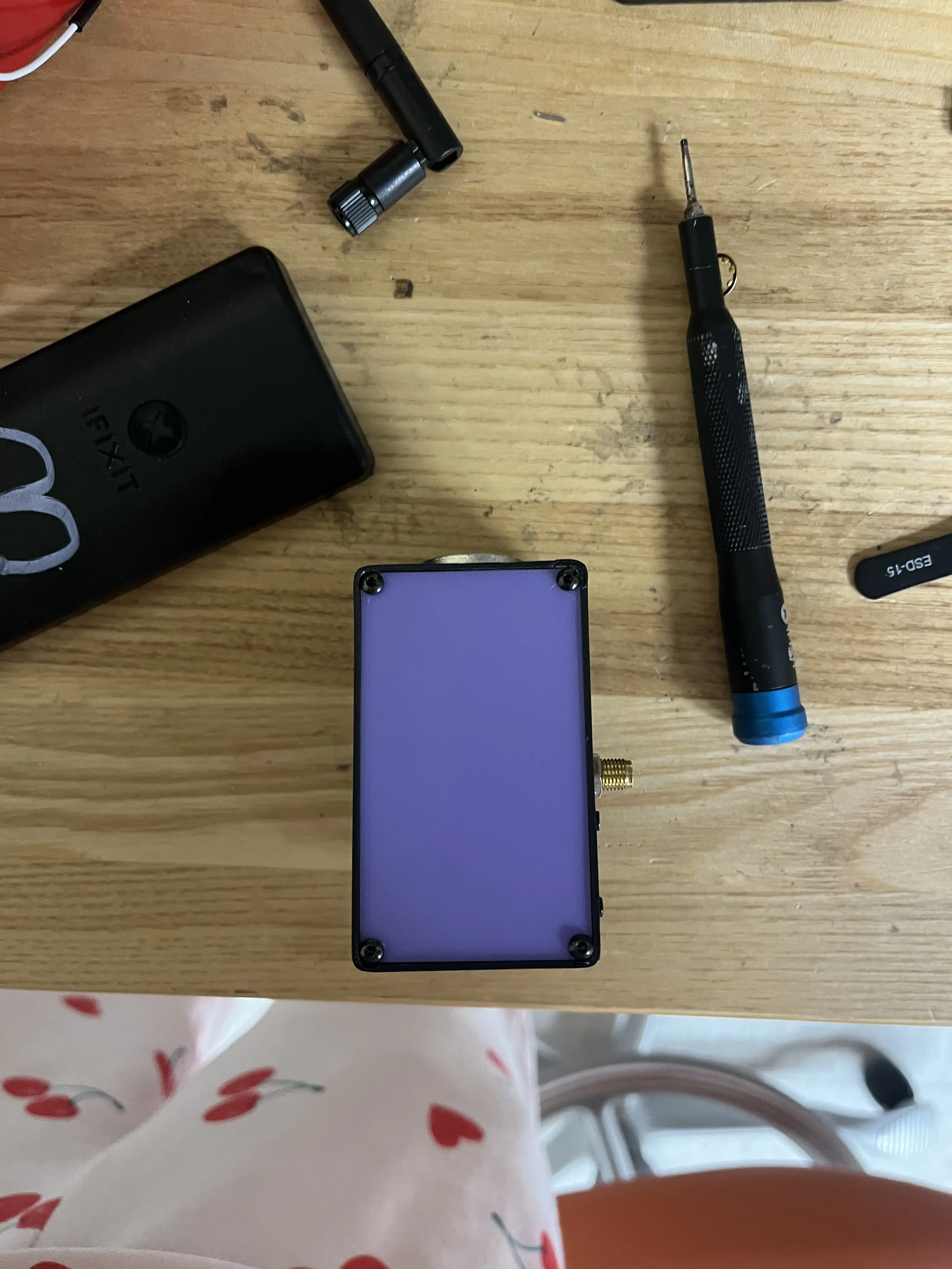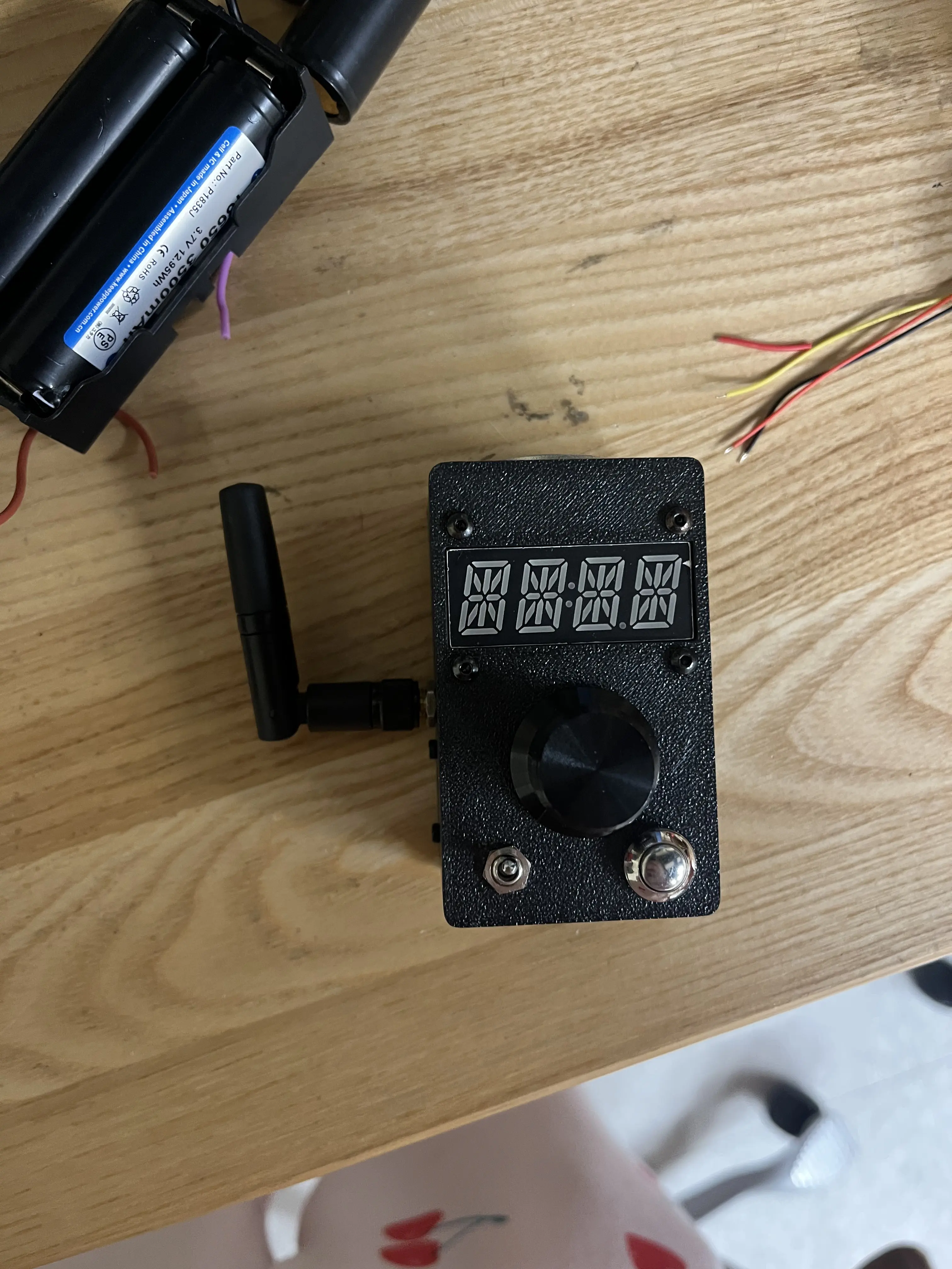 The lights are controlled over DMX, the industry standard communication protocol for stage devices. To communicate from the stage manager’s light board to the bands, I constructed a small transmitter built around a serial adapter (for the DMX signals) and an ESP32S3 (for processing and broadcasting to the bands). The transmitter had some physical controls and a display for selecting things like addresses and blacking out the bands.