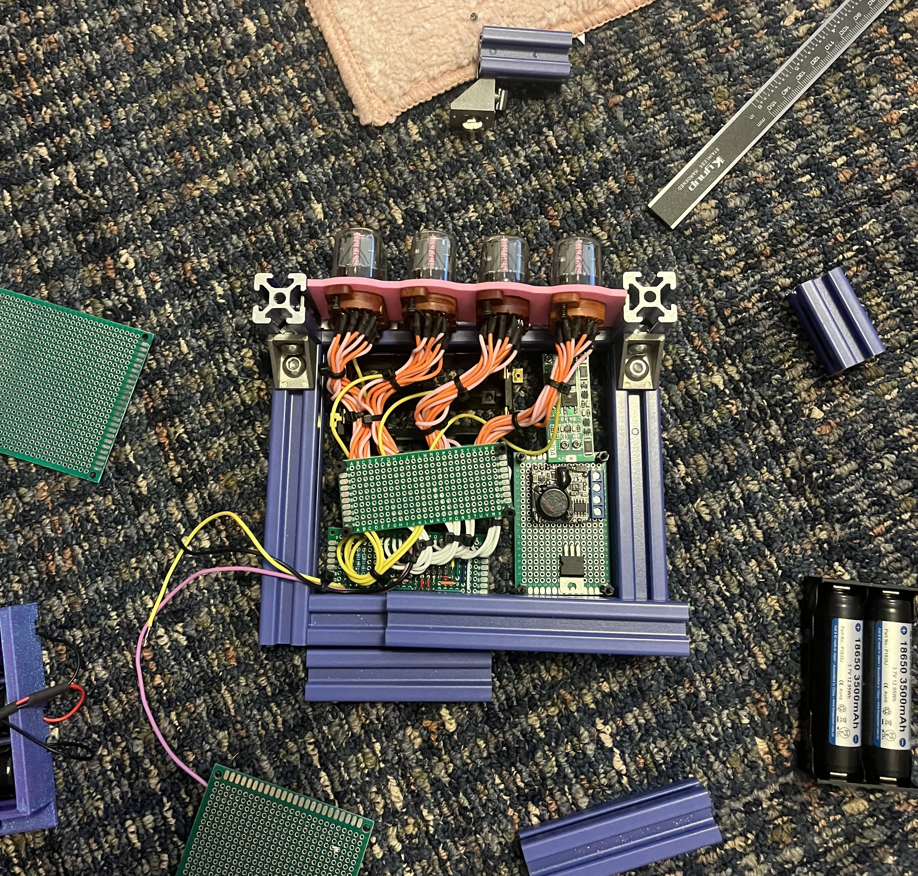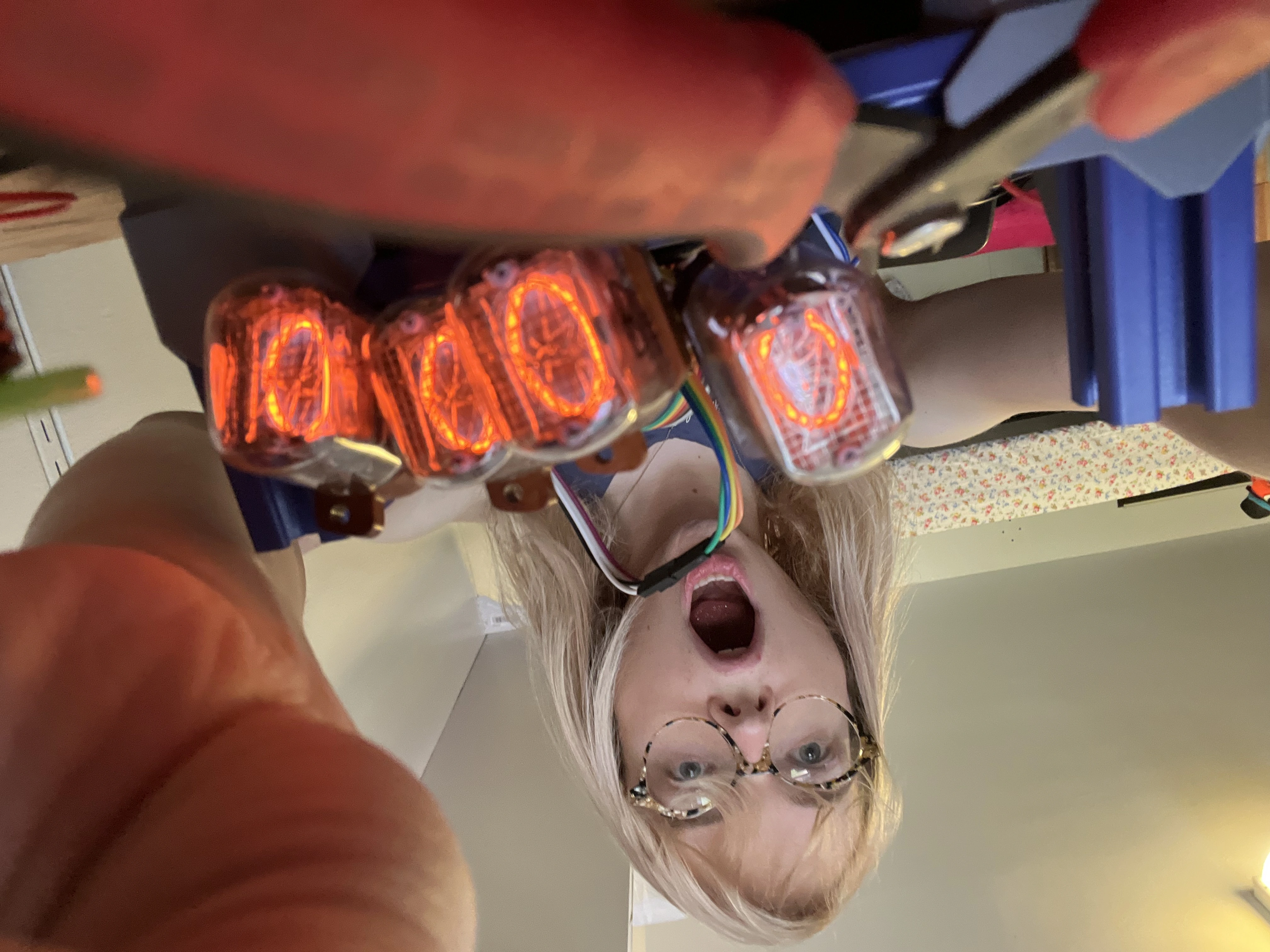 This is a build I really want to go back to and polish up. I’d love to remove that eyesore MCU and implement my counting circuit, and to freshen up the exterior. I wish I’d taken more photos before the build got packed into a “revisit when available” box – for instance, the only photo I have of the tubes actually functioning is this one of me looking like a very excited doofus.