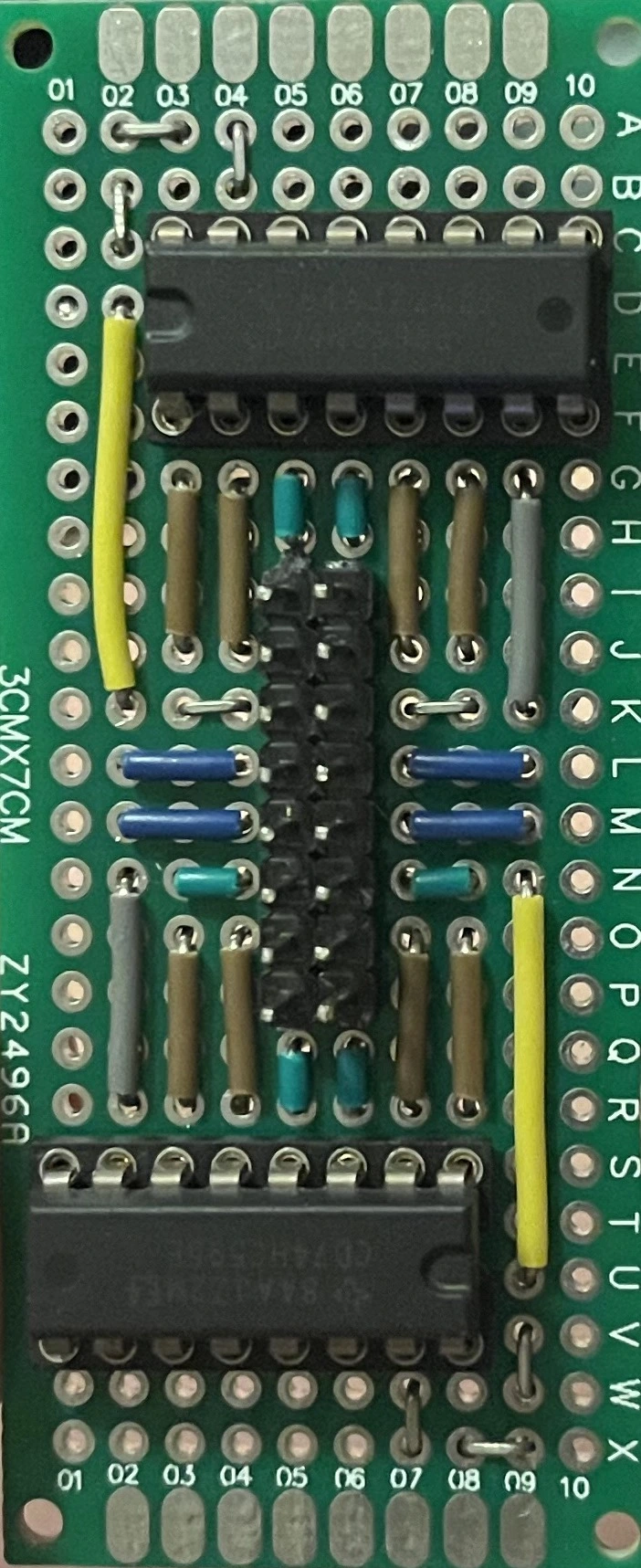 To solve the problem of where the ribbon cable connects now that there’s no counting system, I made a quick little adapter that hooks up the 16 inputs to the outputs of two shift registers, and wired those shift registers to a microcontroller.